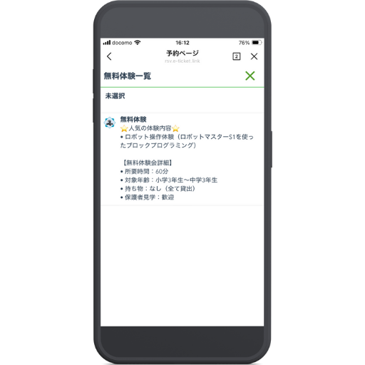 - リッチメニューの「体験会予約はこちら」から申し込む