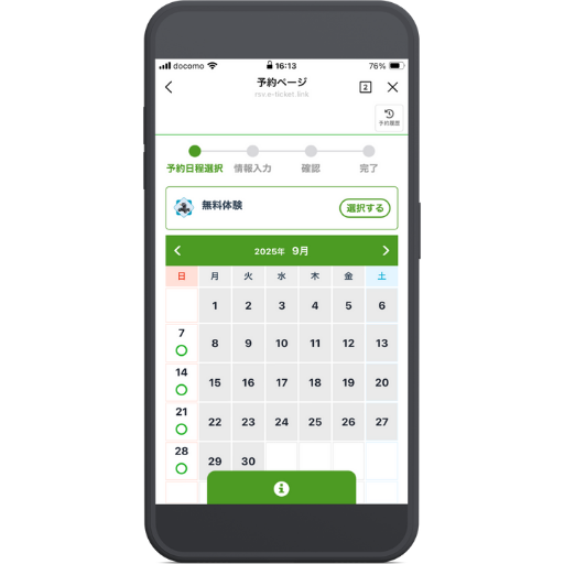 - 体験会が可能な日にちを選択する。「◯」が書いてあるところが選択できる。