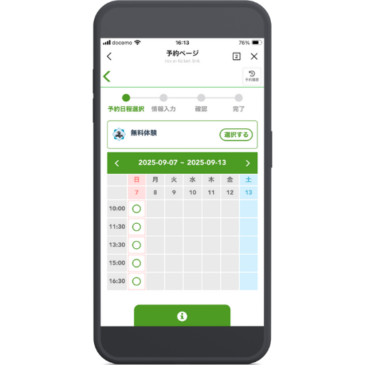 - 体験会の時間を選択する。「◯」は空きがあり